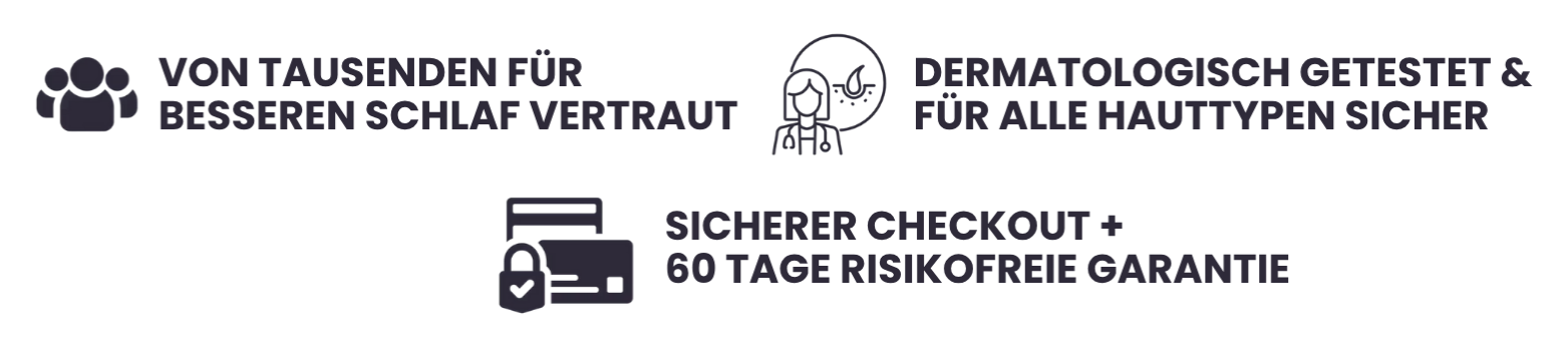 Darum sagen wir: Teste das Schlafpflaster völlig risikofrei – wenn es sich für dich nicht angenehm, sicher und wirksam anfühlt, hast du 60 Nächte Zeit, eine vollständige Rückerstattung zu beantragen.