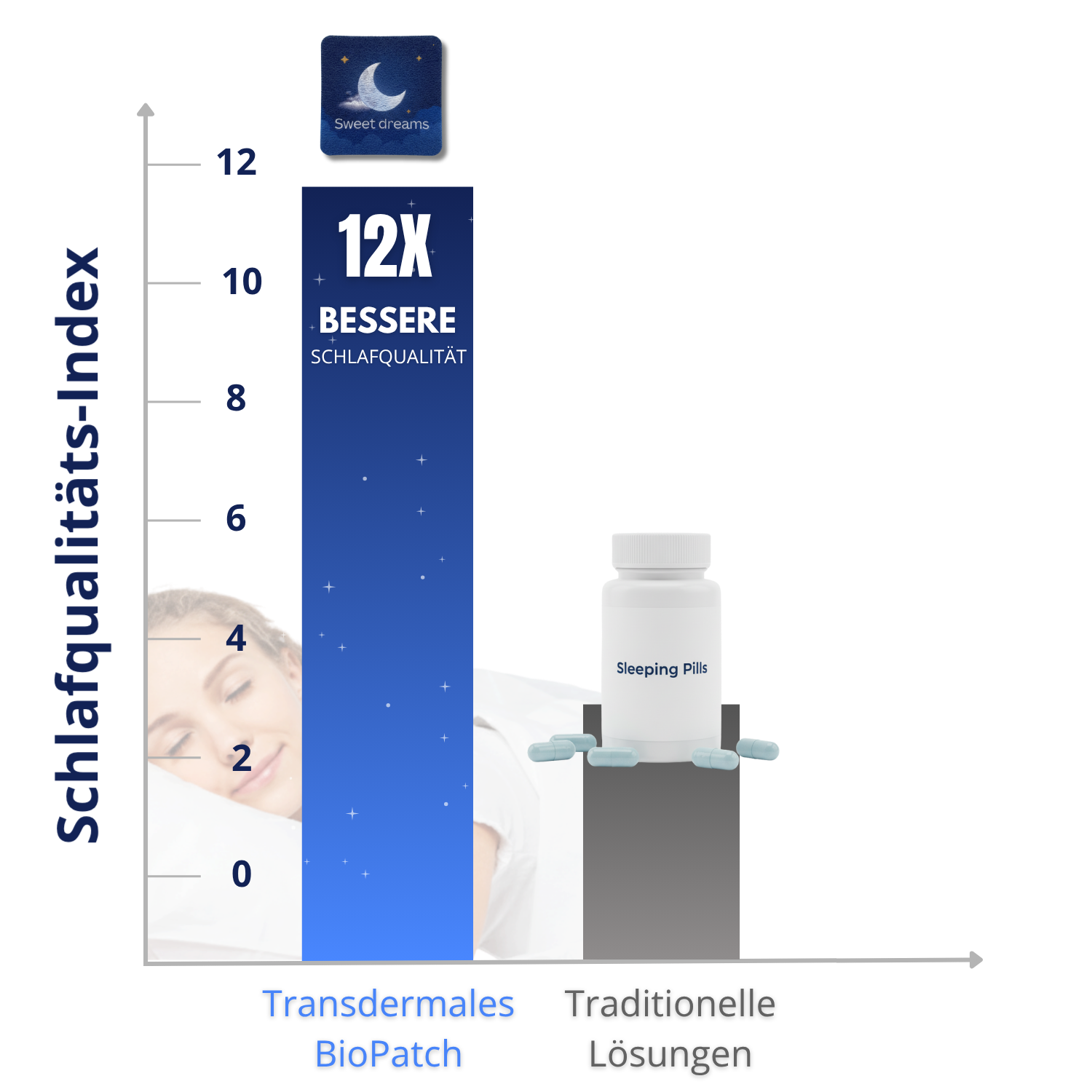 n einer 4-wöchigen Studie zeigte BioPatch eine 12-fach bessere Schlafqualität im Vergleich zu herkömmlichen Lösungen – mit 0% Stress und keiner Morgen-Müdigkeit.