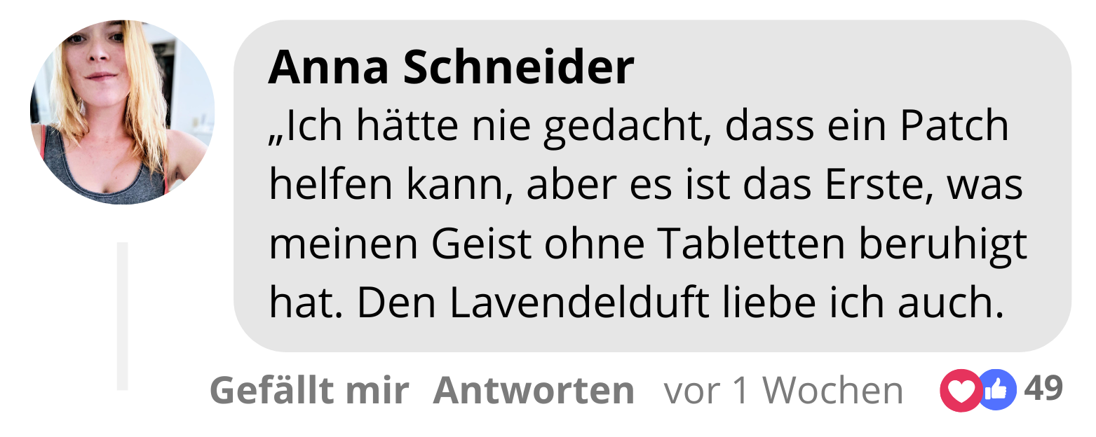 „Früher habe ich mich stundenlang hin- und hergewälzt. Mit diesem Pflaster gleite ich sanft in den Schlaf und wache erholt auf. Es ist fester Bestandteil meiner Abendroutine geworden.“